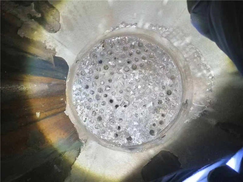2022年8月12日河南都市機(jī)械設(shè)備有限公司馮經(jīng)理坐鎮(zhèn)指揮,技術(shù)員喬俊陽、都紅植積極配合,與新疆哈密市,新疆湖晟新材料科技有限公司張總,針對兩臺熱水缶,(廢水處理蒸發(fā)器)多年沒有解決了的結(jié)垢堅(jiān)硬堵死的管子內(nèi)徑38毫米長度6米難題,使用特別加長的加粗軟軸,進(jìn)行一步到位的疏通清理,過去奔著報(bào)廢處理的設(shè)備又重新煥發(fā)生機(jī),即節(jié)約資金損耗又減少了工作時(shí)間,大大的為企業(yè)提高了效益,深受化工廠化肥廠鋼廠電廠制氧廠水泥廠糠醛廠青睞和歡迎!
